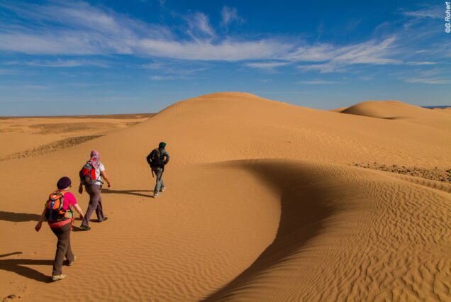 After breakfast, you'll head to Merzouga, passing through the Todra Gorges, the starting point for hikes to the highest mountains of the High Atlas. You'll visit the site and continue to Merzouga through several nomadic Berber villages. Once you arrive in Merzouga, you'll embark on a camelback ride through the breathtaking dunes of Erg Chebbi, and enjoy the sunset before returning to the bivouac where you'll spend the night under the stars.